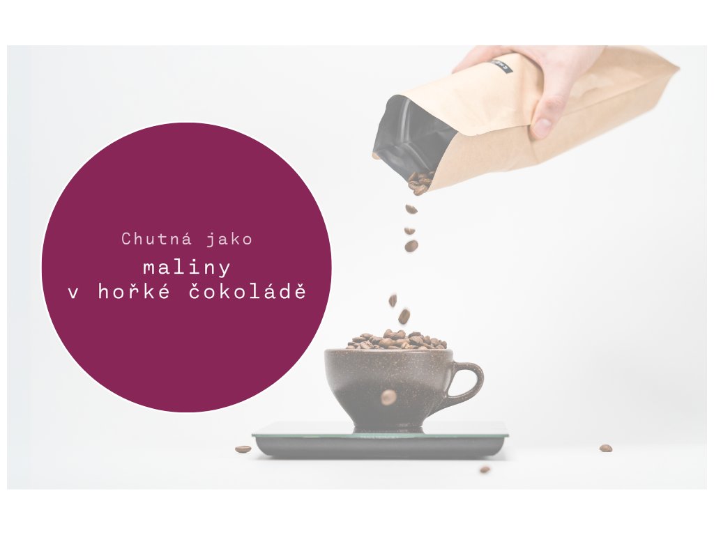 Čokoládová káva, kterou si můžete připravit na espresso nebo pomocí filtru. Chuťový profil: maliny v hořké čokoládě.
